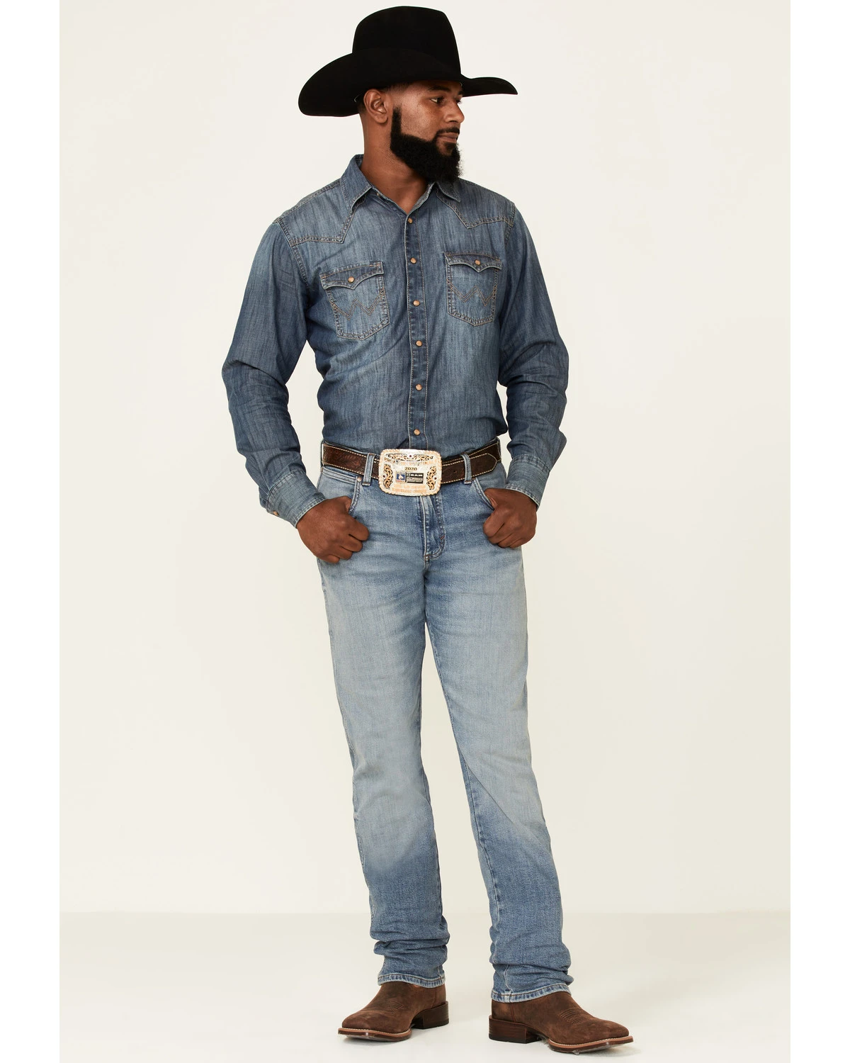 - Classic “W” stitched embroidery on back pockets